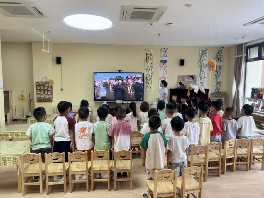 雄安雄东长宁幼儿园师幼集体观看阅兵仪式