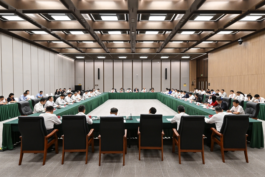 张国华与参加2025年中国国际服务贸易交易会雄安新区数字贸易创新发展大会重要嘉宾举行工作座谈。雄安媒体中心王伟倩 摄