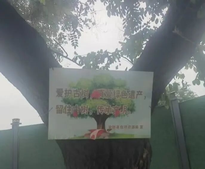 在雄安新区沿着新开通的通淀路驱车向南,穿过南河桥,公路西侧绿化带里一棵枝繁叶茂的高大国槐扑面而来,与旁边新栽的小树形成鲜明对比。树上挂着安新县自然资源局制作的牌子:“爱护古树,珍爱绿色遗产,留住古树,传承文明。”