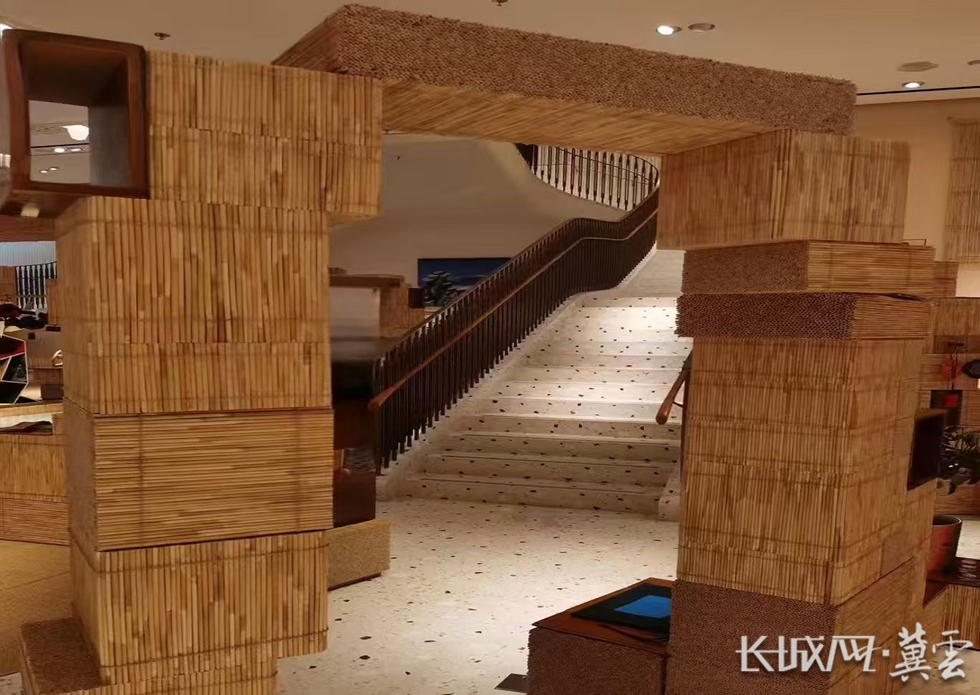 同时,这款展品利用“芦苇表面包裹无机纳米防火层”复合技术,使其防火等级达到B级,克服了芦苇易燃易腐的风险。除此之外,芦苇中空的结构,可以自动调节室温,让“芦苇房”成为“会呼吸的建筑”。