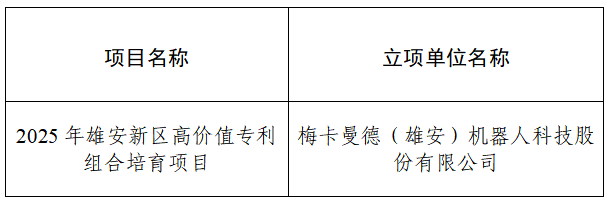 关于2025年雄安新区高价值专利组合培育项目拟立项项目的公示