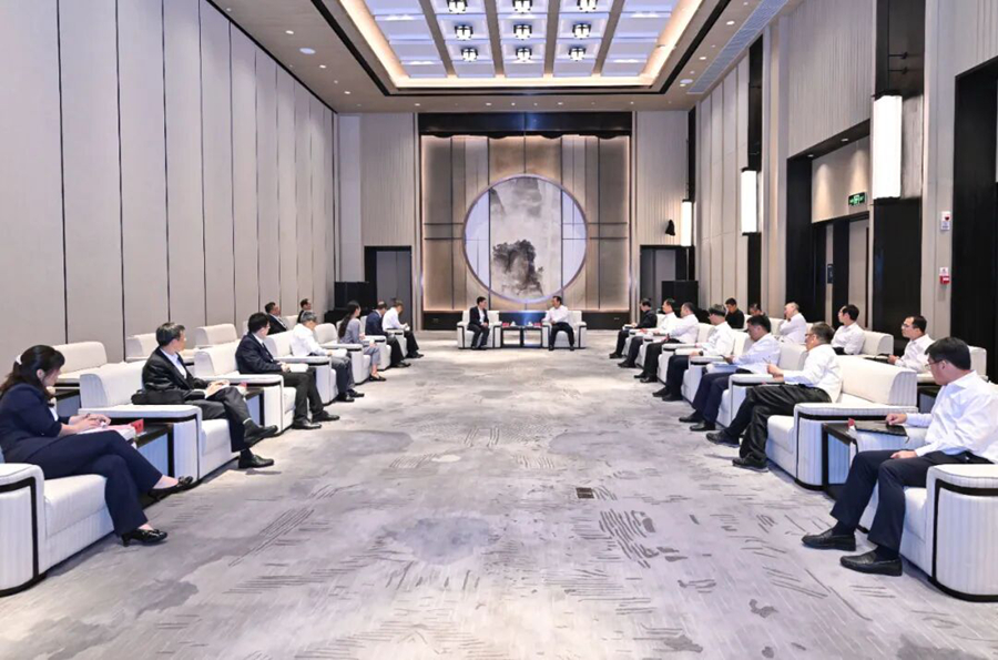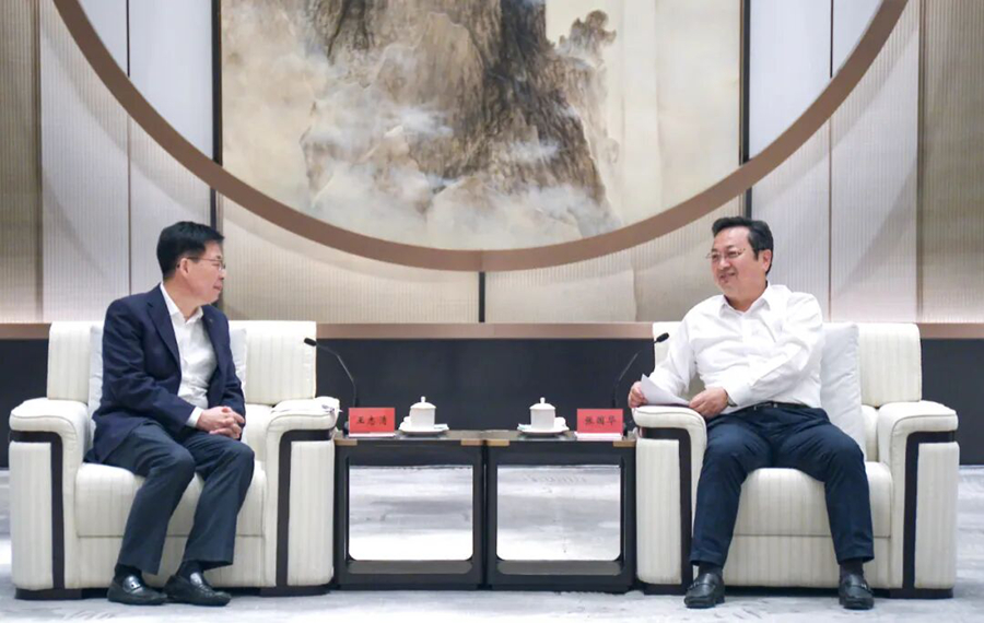 张国华与中国东航董事长、党组书记王志清一行举行工作座谈。雄安传媒中心王伟倩 摄