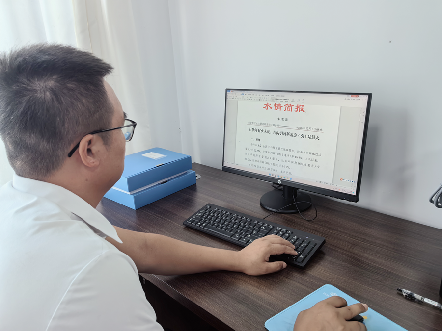 “为确保水情工作不断档、信息处理高效精准,我们正在全力以赴。”今年“双节”期间负责水情值班的冯同飞说。日常主要承担水情业务工作的他,觉得假期值班既是一份责任,更是一份担当。