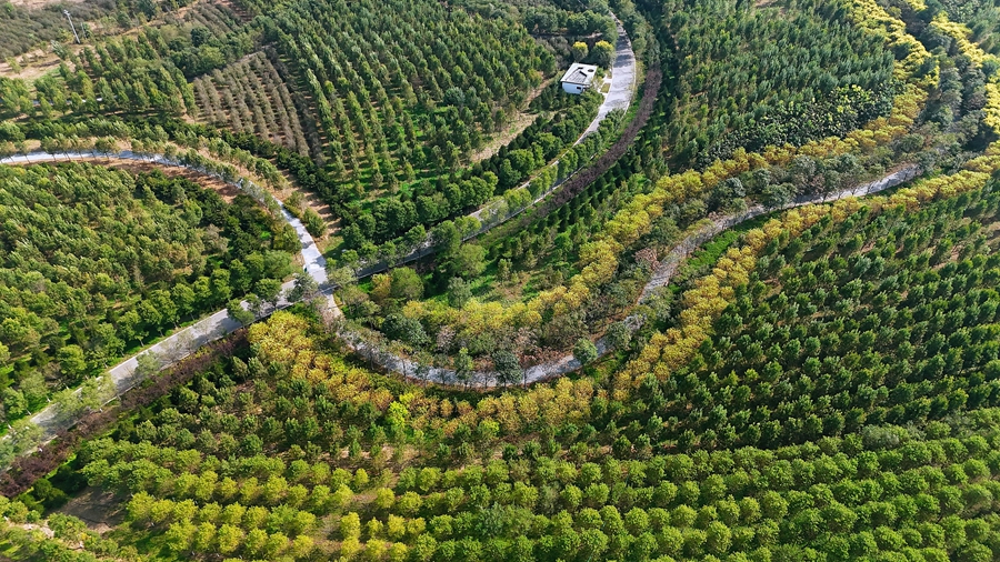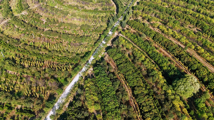 图为雄安打造的扇形“千年秀林”。陈汝健 摄