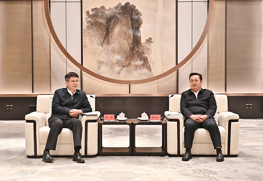 张国华与中国工商银行党委书记、董事长廖林一行举行工作座谈。刘向阳 摄
