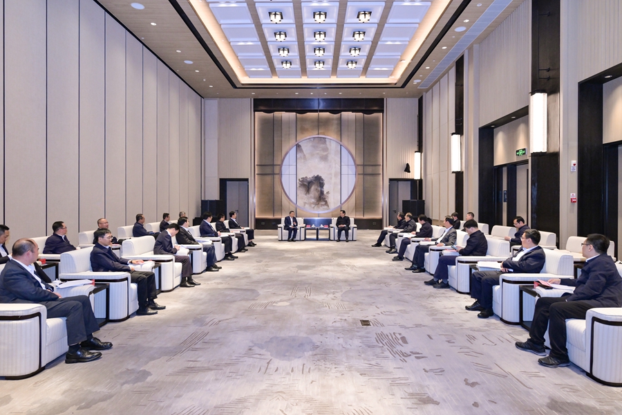 张国华与中国交通建设集团党委书记、董事长宋海良一行举行工作座谈。雄安媒体中心王伟倩 摄