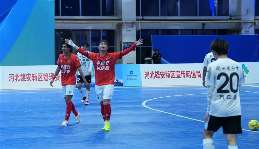 雄安新区队员庆祝进球。雄安媒体中心赵毅 摄