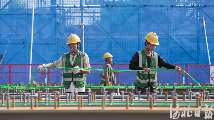 9月4日,在北京科技大学雄安校区建设工地,建设者们正在进行施工作业。河北日报见习记者李畅 摄