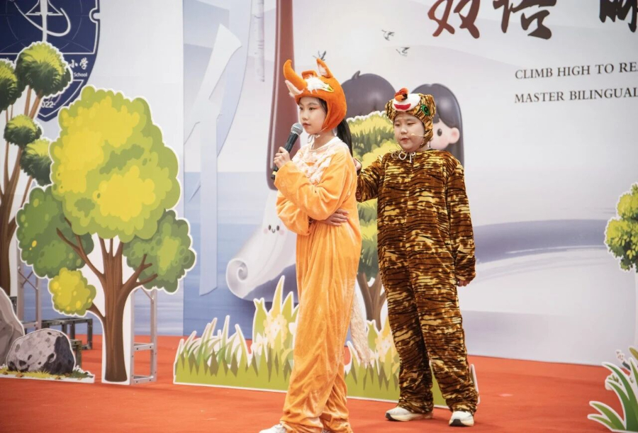 活动在活力四射的开场歌舞《一想到你呀》中拉开序幕。随后,语文朗诵《诗词歌赋里的中华》《穿越中国唱重阳》、舞蹈《节气诗韵》、语文课本剧《我要的是葫芦》、英语戏剧《The Fox and The Tiger》《The Story of Global Travel Agency》等节目轮番上演,孩子们自信从容的表演,展现出良好的语言素养与艺术表现力。