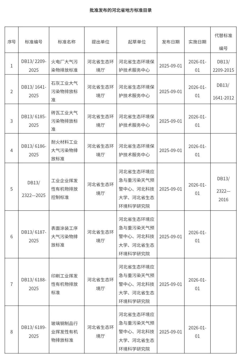 经河北省人民政府批准,河北省市场监督管理局会同河北省生态环境厅于9月1日联合发布了《火电厂大气污染物排放标准》等八项强制性河北省地方标准。