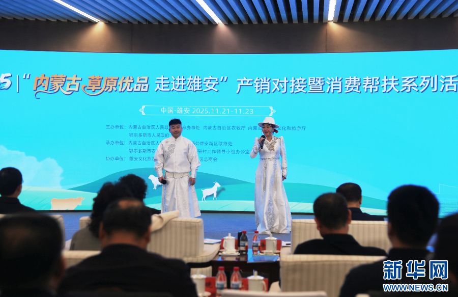 11月22日,2025“内蒙古草原优品走进雄安”产销对接暨消费帮扶系列活动启动仪式在雄安会展中心举行。新华网李倩 摄
