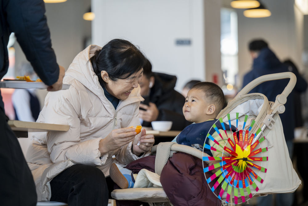 11月25日,人们在文华社区华序府智慧食堂内用餐。