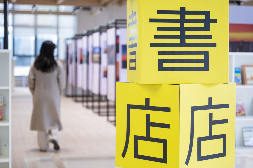 11月25日,一名女士在文华社区樊登书店参观摄影展。