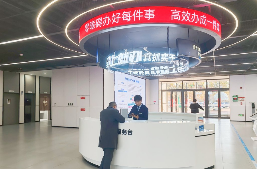 日前拍摄的雄安新区政务服务中心。在这里,办事人只需在取号机前刷脸,系统即可自动识别并关联其身份信息,实现无证取号。河北日报见习记者康晓博 摄