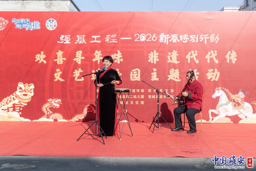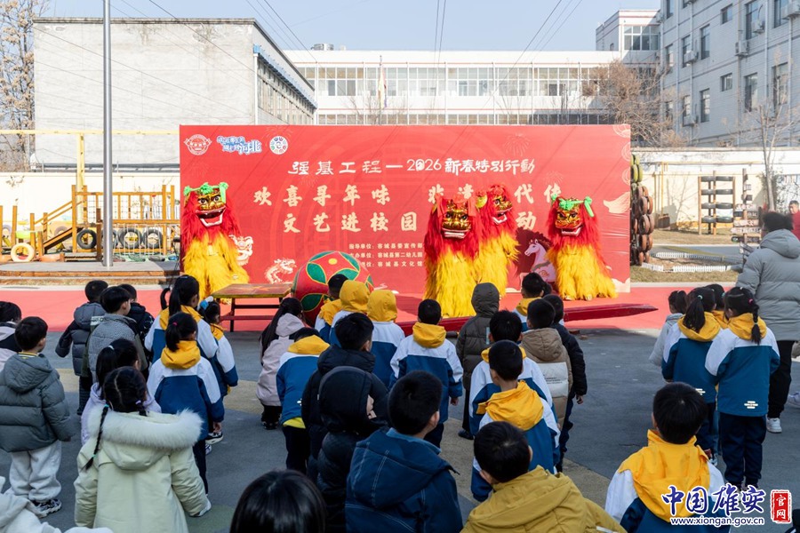 中国雄安官网1月9日电(王晓雨)锣鼓铿锵,狮舞欢腾,杂技精彩,琴韵悠扬。1月9日上午,在热闹喜庆的氛围中,容城县强基工程——2026新春特别行动“欢喜寻年味 非遗代代传”文艺进校园主题活动启动仪式在容城县第二幼儿园举行。本次活动旨在助力全国文明城市创建,传承容城县非物质文化遗产。