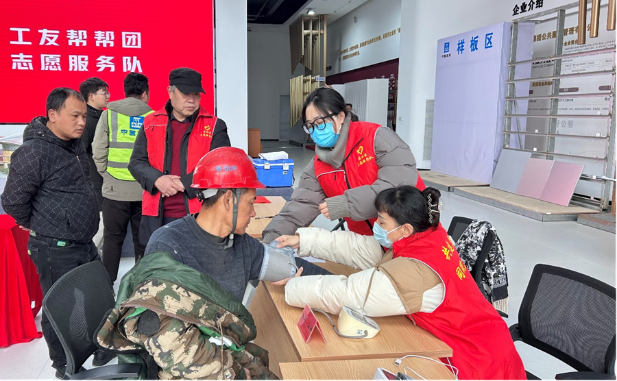 “工友帮帮团”志愿服务活动为一线工人提供义诊服务。启动区管委会供图