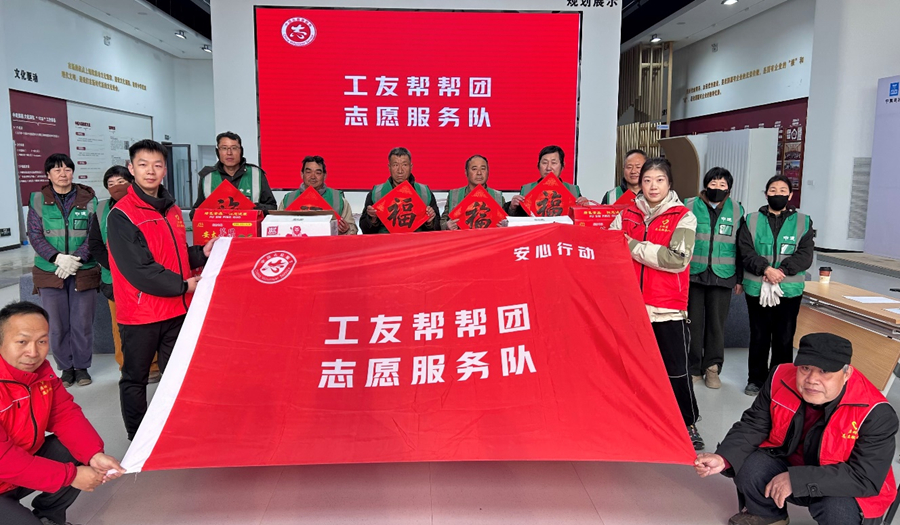 活动现场,志愿力量交织成一道温暖风景线。清晨,工友们已与文华社区志愿者、物业及环卫人员联动,冒寒清扫园区道路,为居民出行提供便利。一位社区志愿者在分发物资时感慨:“多亏工友们的付出,大家进出安全多了!”
