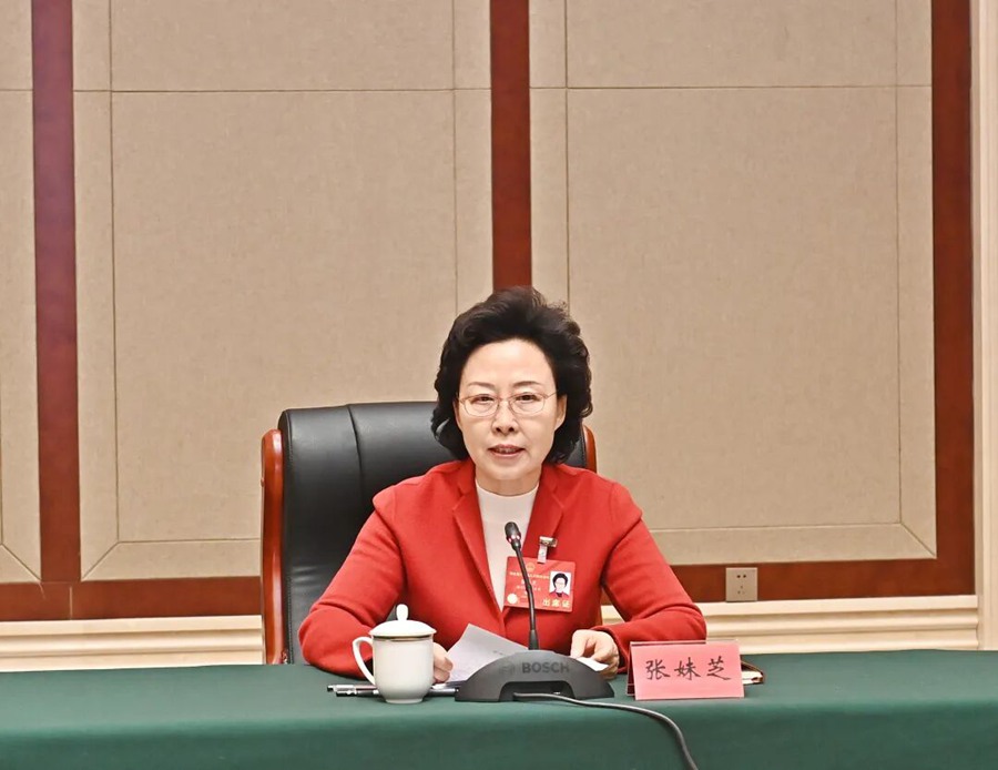 张妹芝参加省十四届人大四次会议雄安新区代表团审议。刘向阳 摄