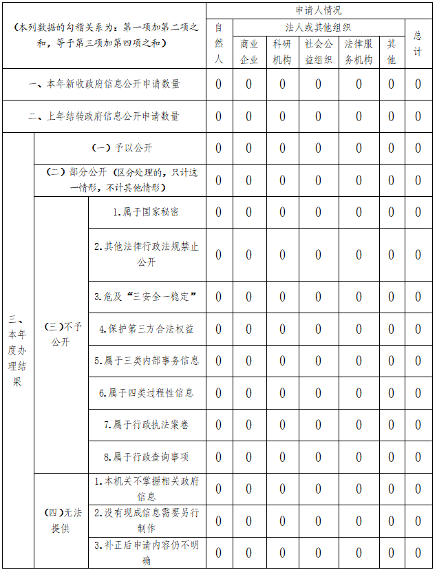 三、收到和处理政府信息公开申请情况