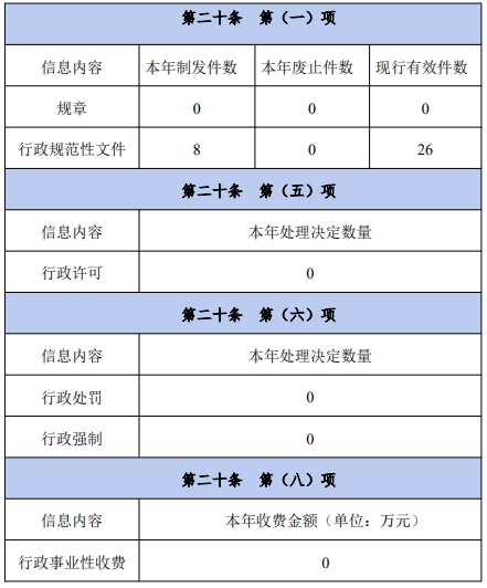 (五)监督保障方面。对各类政府文件梳理形成台账,细化实化责任分工。将政府信息公开工作纳入部门督办和考核,由分管负责同志和政务公开工作人员开展监督检查,强化考核评估结果运用。积极组织工作人员参加雄安新区政务公开培训,持续提升业务能力。