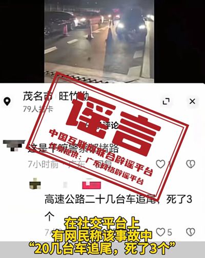 辟谣:网传“广东茂名高速路多车连撞致三人死亡”系谣言
