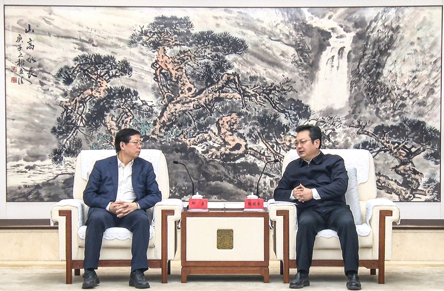 张国华与清华大学党委书记、中国科学院院士邱勇一行举行工作座谈。刘向阳 摄