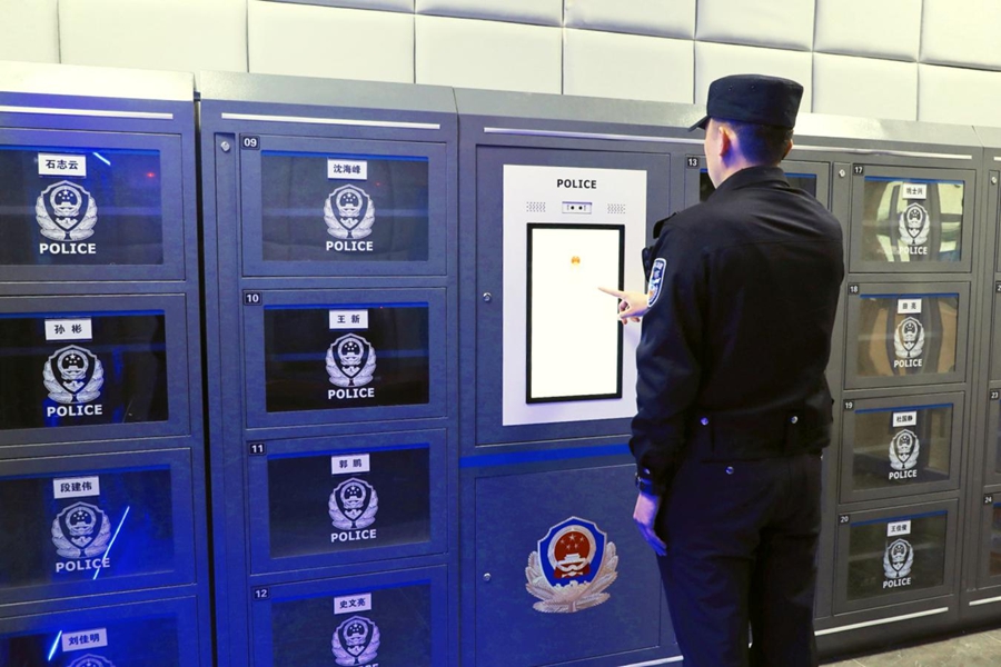 基层派出所内,智能装备柜通过人脸识别实现装备取用、绑定、归位全流程智能化管理,执法视频自动上传归档,让民警轻装上阵深耕一线。