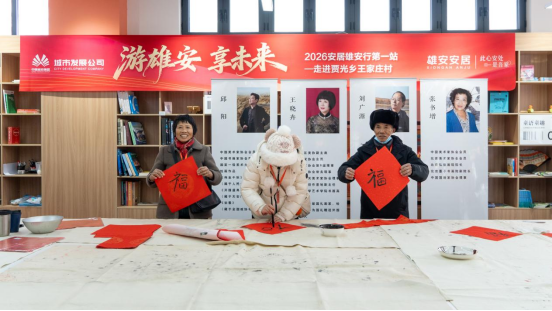 活动当天,疏解企业员工代表观看了舞狮表演,参观了传统市集,并参与互动体验环节。当地村民现场讲述乡村变迁,介绍新区设立以来在环境、建设、民生等方面的发展成效。现场同步开展“写福字・颂雄安”文化笔会,来自清华美院等机构的书画家与文艺工作者同疏解企业员工代表亲切交流。