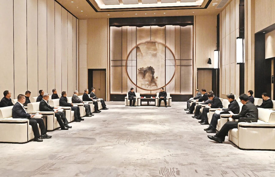 张国华与国家电网有限公司董事长、党组书记张智刚一行举行工作座谈。刘向阳 摄