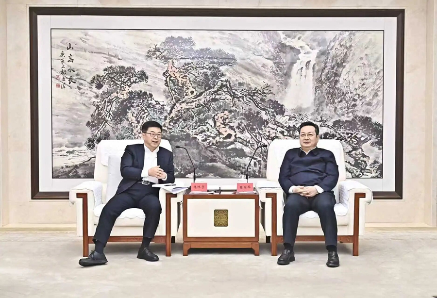 张国华与中国进出口银行党委书记、董事长陈怀宇一行举行工作座谈。刘向阳 摄