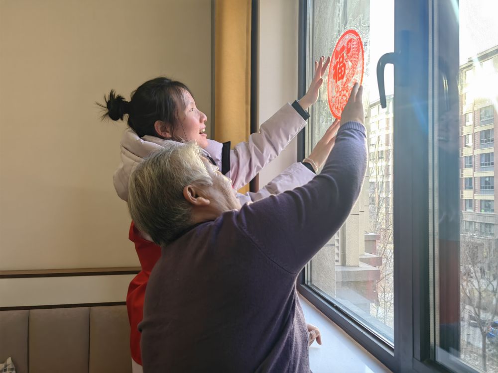 腊月二十七这一天,分管礼贤花园小区的南文营社区工作者申彤欣和同事一起来到马淑仙家中,按照清单上的备注帮她贴对联和福字。2025年底,申彤欣到南文营社区工作,虽然只有两个多月,她已经和辖区内的居民成了“老熟人”,敲开马淑仙家门的第一句话便是“大娘,今天量血压了吗?燃气费还够不够?”