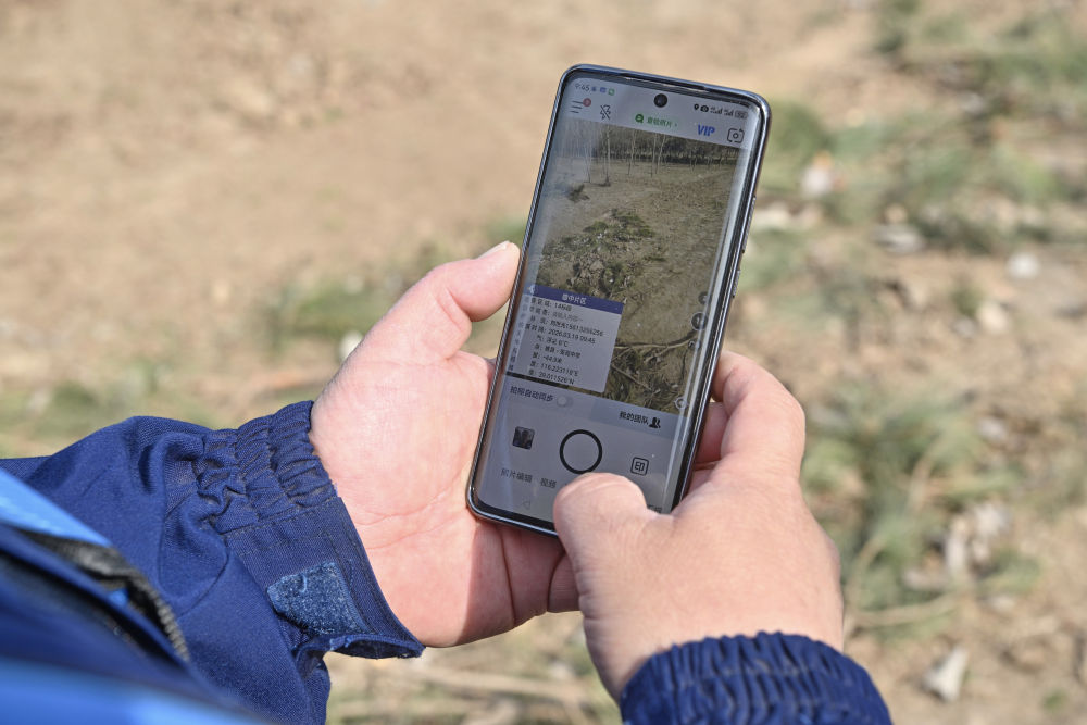 ↑3月19日,刘世光展示手机里的护林巡查记录。新华社记者朱旭东 摄