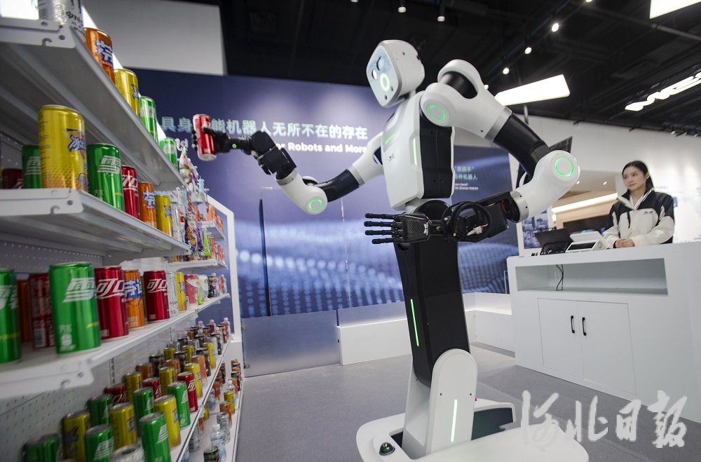 2月4日,雄安人工智能产业园,梅卡曼德机器人在进行智能取货演示。