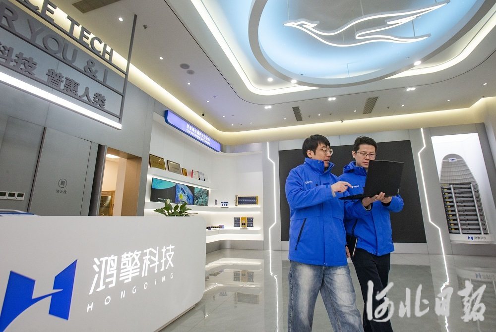 2月25日,蓝箭鸿擎(雄安)空间科技有限公司员工在进行技术交流。