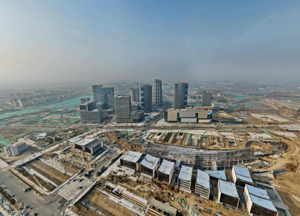 “十四五”以来,雄安新区扎实推进大规模建设与承接北京非首都功能疏解,每年保持2000亿元投资规模,累计完成投资工作量超10000亿元,实现了拉框架、显雏形、展五新、聚要素、上台阶目标任务,一年一个节点、每年一个模样,从无到有、从蓝图到实景。如今,雄安新区开发面积覆盖215平方公里,5300多栋楼宇拔地而起,打造了商务服务中心、国贸中心等一批体现“雄安质量”的标杆项目,现代化城市新气象扑面而来。