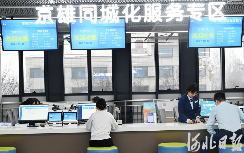 随着京雄“同城化”不断走实走深,京雄社保经办“同城化”工作持续推进。2024年,雄安新区接入北京社保网络,设立“京雄社保窗口”,实现9项社保高频服务事项同城化办理;2025年引入“北京人社自助服务一体机”,实现35项社保高频事项“同城自助办”,打造“一窗两端”京雄社保“同城化”服务格局;2026年雄安“京雄社保窗口”服务事项扩充,由9项扩大到16项。