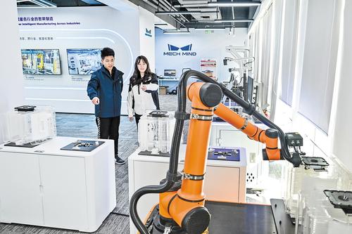 日前,梅卡曼德(雄安)机器人科技有限公司员工在演示工业机器人。记者李东宇 摄