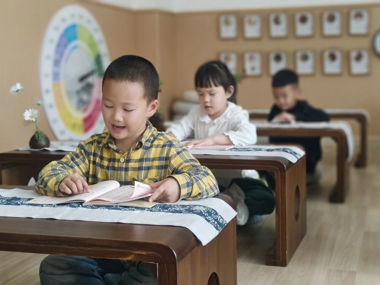 晨星幼儿园的“蒙正学堂·亲子养正班”由幼儿园与家长联合共创,以“养正一个孩子,兴旺一个家族;养正千万孩子,复兴中华民族”为使命,通过“生活化教学、游戏化互动、场景化体验”,家长、孩子、教师共读经典,让孩子们在轻松氛围中理解传统礼仪、养成良好习惯。这里的阅读,不是单向灌输,而是亲子同修、三代共学。