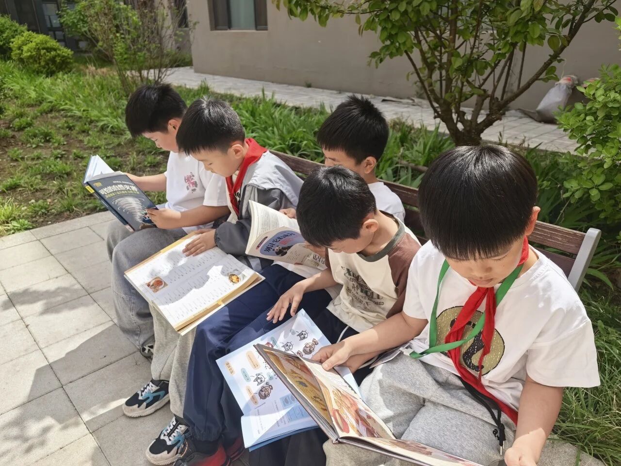长兴初级中学则将每周四定为“耕读日”,明确提出“营造书香校园、提升审美素养、培养阅读习惯与文化底蕴”的目标。这一天,上午大课间开展语文阅读,下午大课间开展英语阅读,由班主任组织学生进行沉浸式阅读。同时,学校开设“户外耕读课”,学生必须在户外指定地点开展读书分享、经典诵读等活动。为了持续激励学生,语文、英语老师结合阅读参与度与分享质量,为优秀学生颁发“耕读章”(美育类),坚持“谁分享、谁盖章”,让每一次表达都被看见、被鼓励。