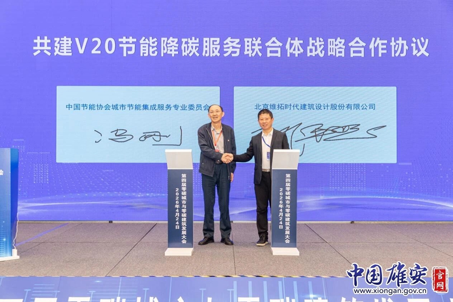 中国节能协会城市节能集成服务专业委员会与北京维拓时代建筑设计股份有限公司签署战略合作协议。中国雄安官网牛思佳 摄