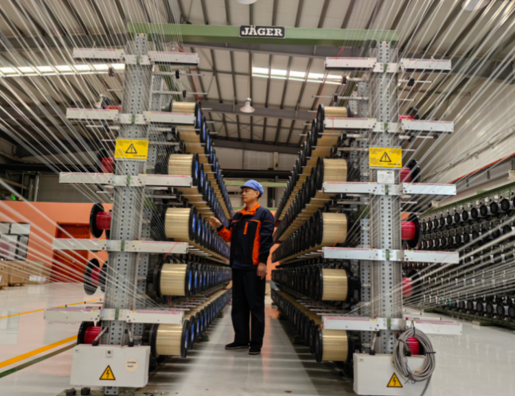 此后,公司每年都会拿出营收的3%到5%,用于研发和技改,恒温车间、研发中心、专家团队等相继落地;2022年,公司更是投入1.4亿元购进了9台(套)国际最先进的聚酯网专用生产设备。