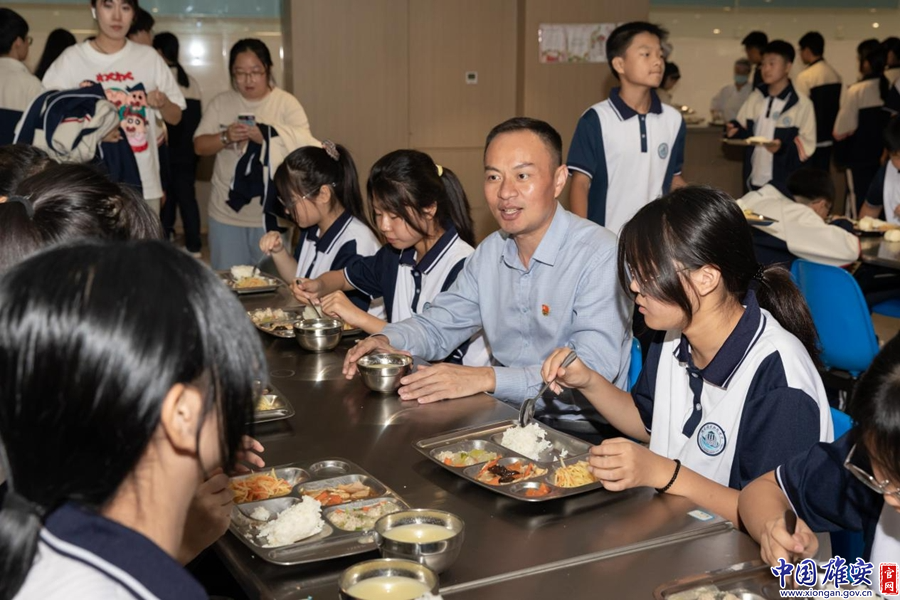 陈长保在陪学生们吃饭(资料图)。中国雄安官网毛鹤然 摄