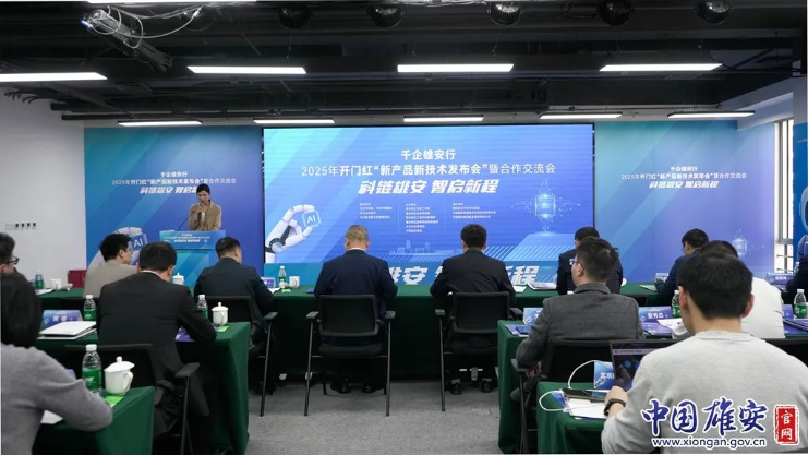中国雄安官网2月26日电 2月25日,“千企雄安行”2025年开门红——新产品新技术发布会暨合作交流会在雄安新区中关村科技园举办。活动由北京市科委、中关村管委会,河北省科学技术厅,河北雄安新区管理委员会联合指导,雄安新区多部门协同主办,以“科链雄安 智启新程”为主题,搭建起科技与产业深度对接的平台。雄安新区党工委委员、管委会副主任丁晓龙,中关村发展集团副总经理张国斌参会并致辞。雄安集团党委常委、董事、副总经理,城市发展公司董事长,雄安规划设计研究院执行董事翟伟参加活动。