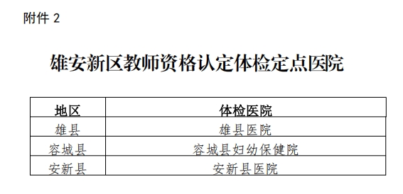 具有良好的身体素质,心理健康,无严重传染性疾病和精神病史,能适应教育教学工作的需要。按照《托儿所幼儿园卫生保健管理办法》(卫生部 教育部令第76号)及《河北省申请教师资格人员体检标准及办法(试行)》规定的标准和要求,在雄安新区教师资格认定机构指定医院参加体检,体检结论为合格。