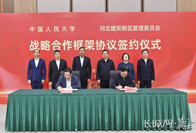 3月18日,中国人民大学与河北雄安新区管理委员会签署《中国人民大学 河北省雄安新区战略合作框架协议》。