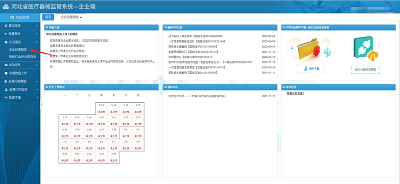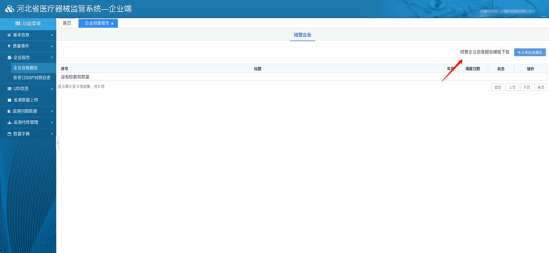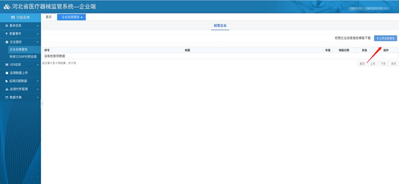 进入系统后,点击“企业报告-企业自查报告”模块。
