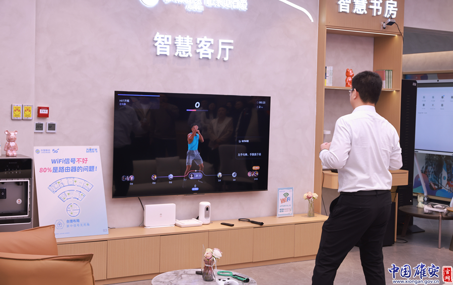 群众在中国移动咪咕科技创新体验中心体验智慧家庭业务。雄安移动供图