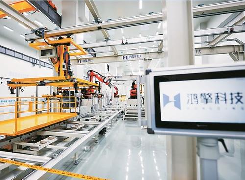 10月22日,蓝箭鸿擎(雄安)空间科技有限公司卫星智能制造中试基地内,首颗“雄安造”卫星完成生产下线。图为卫星智能自动化产线。李畅 摄