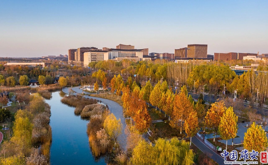 初冬时节,夕阳下悦容公园的静谧景色与容东片区楼宇相映生辉。中国雄安官网李鑫 摄