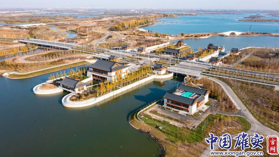 航拍初冬时节的南河枢纽工程。中国雄安官网牛思佳 摄